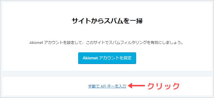 👇の画面に切り替わるので、下側の「手動でAPIキーを入力」をクリックします。