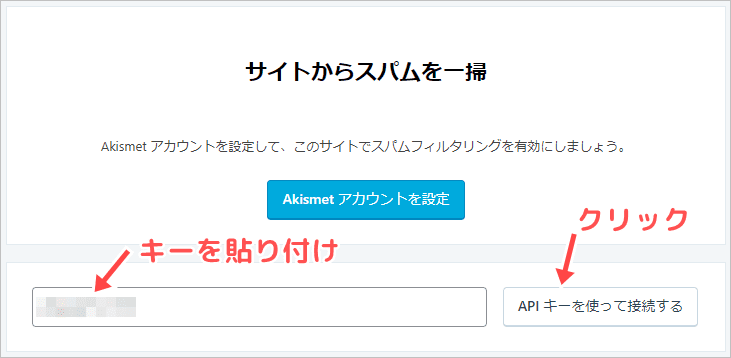 続いて👇のように、「APIキー」を貼り付けてクリックしましょう。