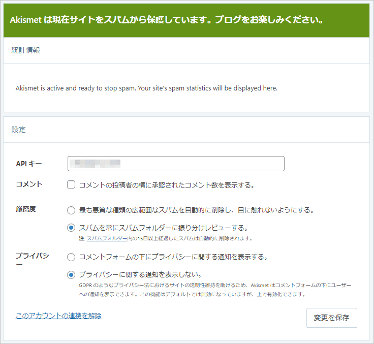 これ以降は、コメント欄に届くスパムコメントを高確率で排除してくれます。