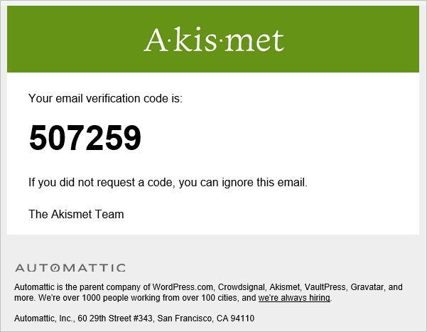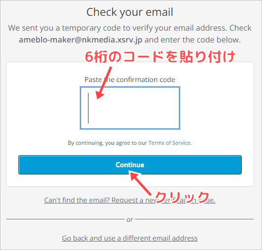 WordPressのAkismetの画面は👇に切り替わっているので、6桁のコードを貼り付けて「Continue」をクリックましょう。