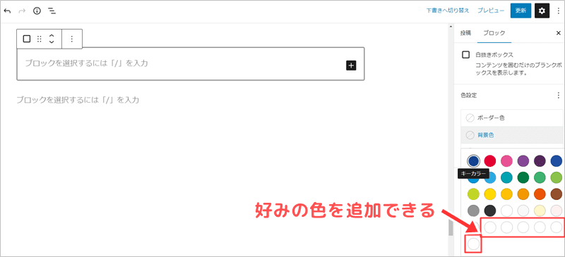 初期設定では濃い目の色が多いので、少し薄い色などを追加してもいいですね。