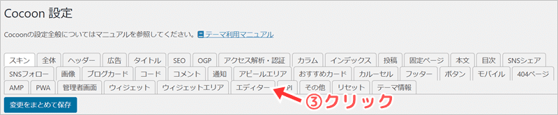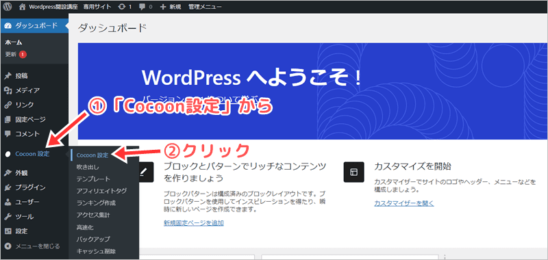 「Cocoon設定」から、さらに「Cocoon設定」を選びます。