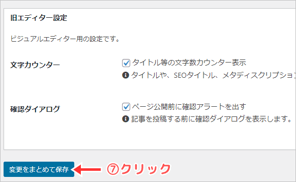 画面をさらに下にスクロールして、「変更をまとめて保存」をクリックして下さい。