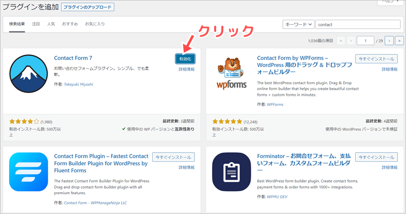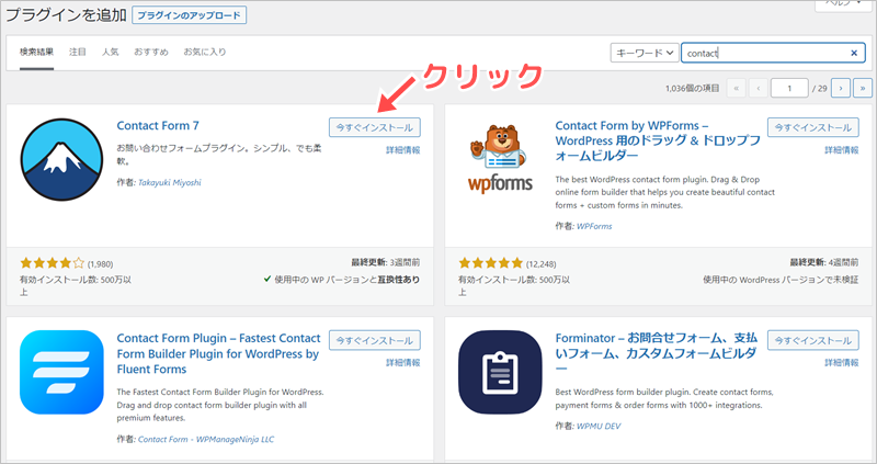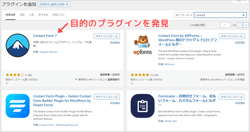 今回は例として「Contact Form7」をインストールしながら解説します。